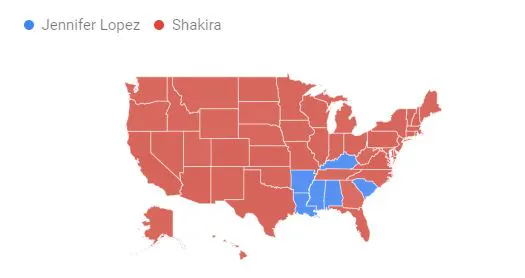 Usually we pit something music related vs. something non-music related here, find out which of the two topics has the most Google juice, then call a winner. This week we're changing it up just a bit following Super Bowl Sunday's halftime performance, featuring an absolutely astonishing greatest hits rundown from headliners Shakira and Jennifer Lopez. It left me wondering which of the two superstars came away with the biggest buzz after the top-notch show, so we narrowed it down to searches over the last seven days instead of the entire year. The results are in and...: